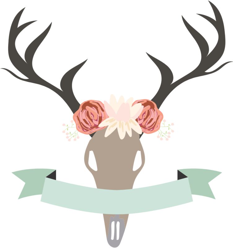Watercolor Antlers Deer Skull Ribbon 1